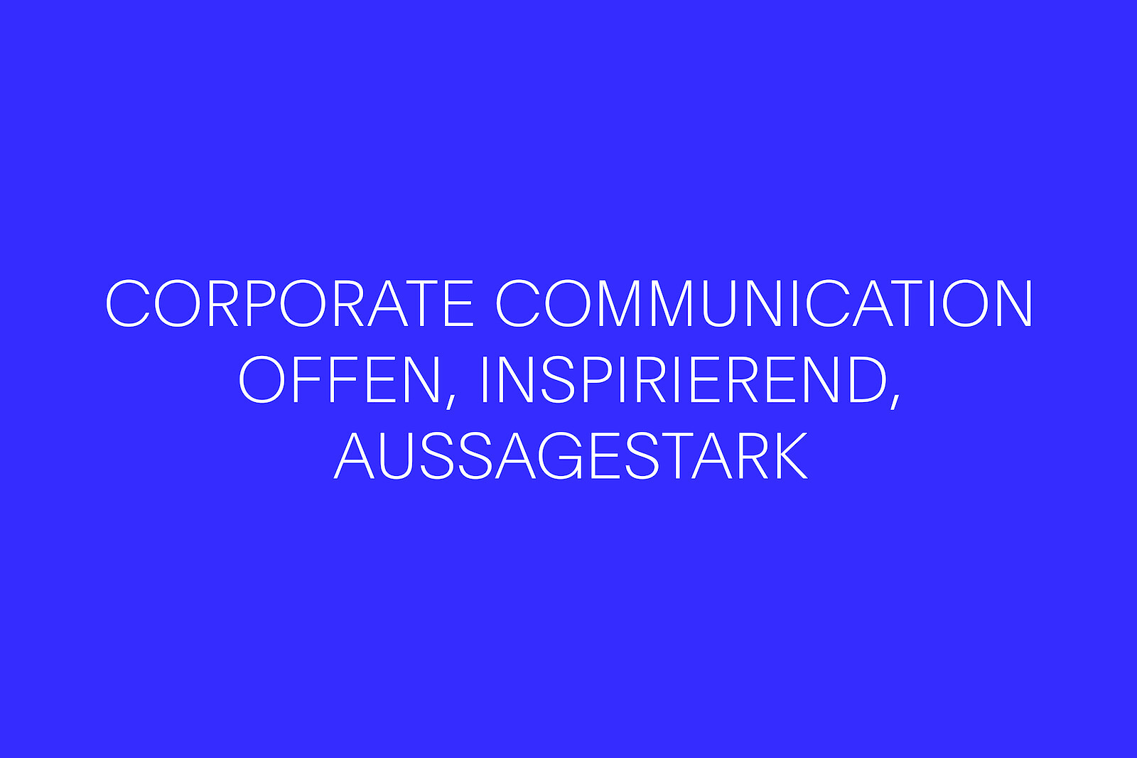Mit seiner hohen funktionalen, kommunikativen und ästhetischen Qualität lädt das Corporate Design zum Gebrauch ein. Es schafft überall dort besondere Markenerlebnisse, wo Menschen mit den Ideen, mit der Kultur des Unternehmens in Berührung kommen. Die Unternehmenskommunikation ist offen und inspirierend. Sie gibt Menschen präzise Vorstellungen vom Unternehmen und eine klare Perspektive.