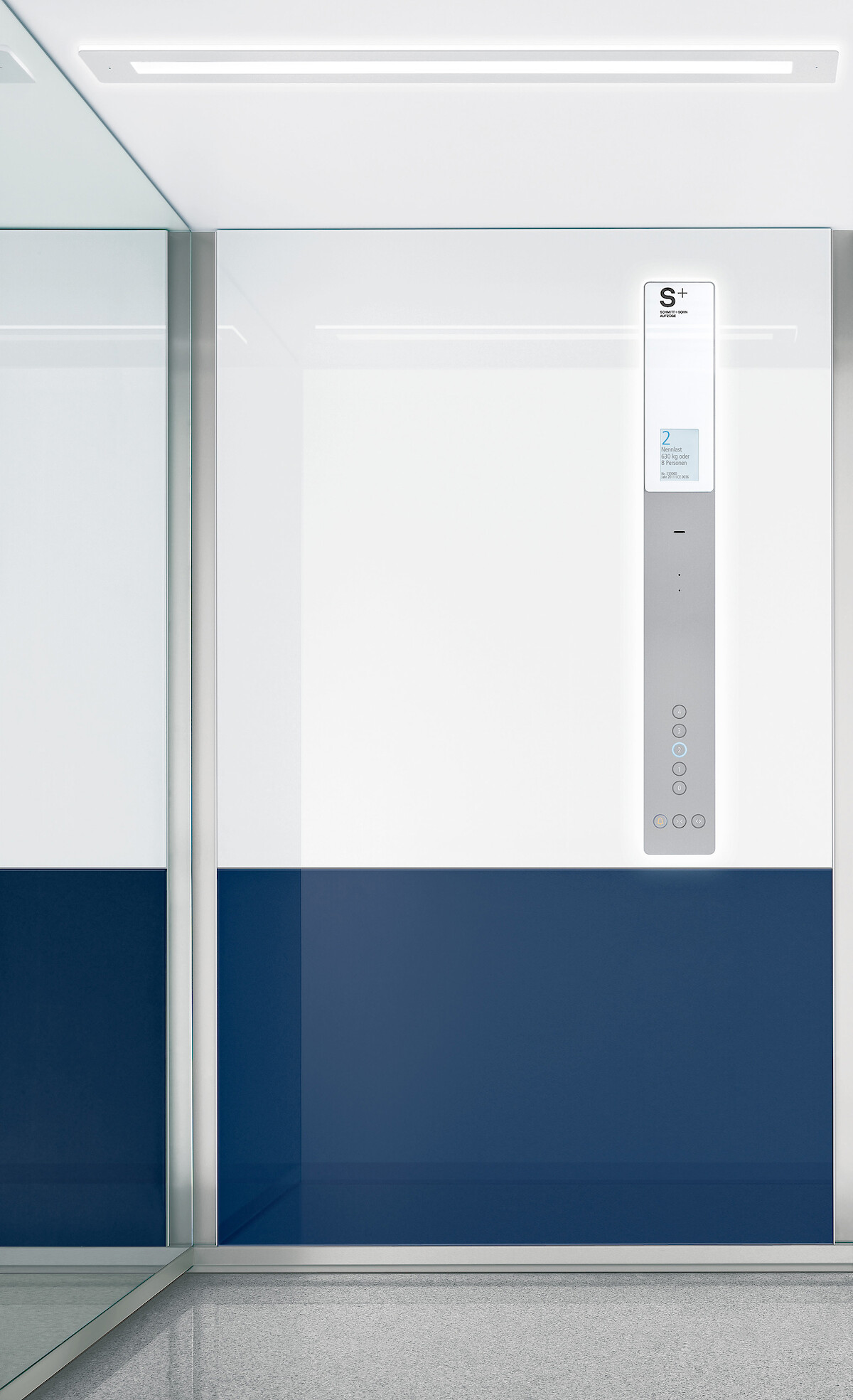 Das Design ist elegant. Der Einsatz von großflächigem koloriertem Sicherheitsglas im Aufzugsdesign ist maßstabsetzend. Die optische Erweiterung des Kabineninnenraums ist hochfunktional. Vertikales Licht schafft eine helle und komfortable Raumatmosphäre. Eine völlig neuentwickelte LED-Linienleuchte mit asymmetrischem Reflektor erzeugt blendfreies Licht. Klare Linien unterstreichen die Eleganz der Aufzugskabine. Ergonomische Ausstattungskomponenten wie Bedientableaus und Handläufe laden ein zum Gebrauch. Die kuratierten Materialien und Oberflächen zeigen eine brillante Wirkung. Design, Funktion, Kommunikation und Ästhetik in einer idealen Verbindung.